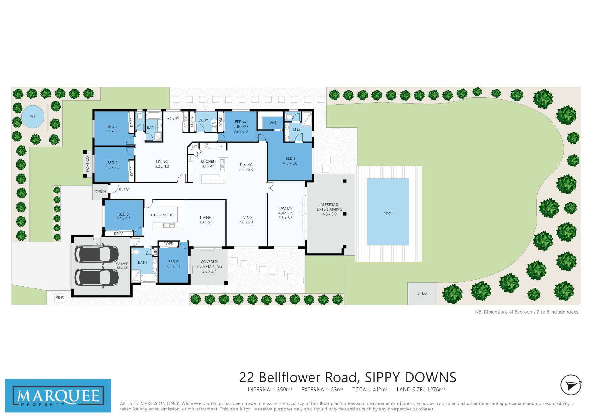 • 5 additional over-sized bedrooms with built-in robes and ceiling fans