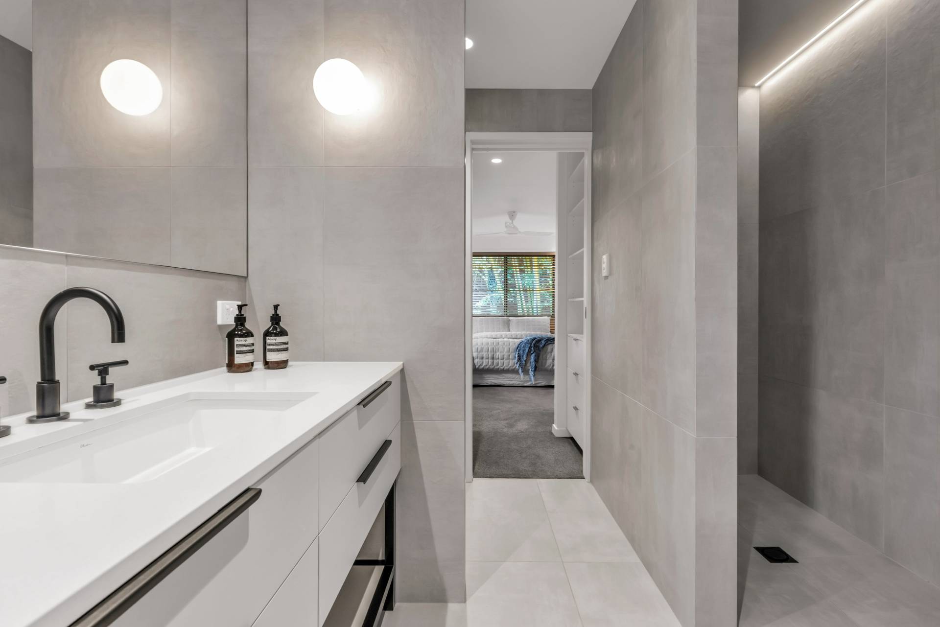 • Stylish two-way main bathroom with luxurious fixtures and finishes