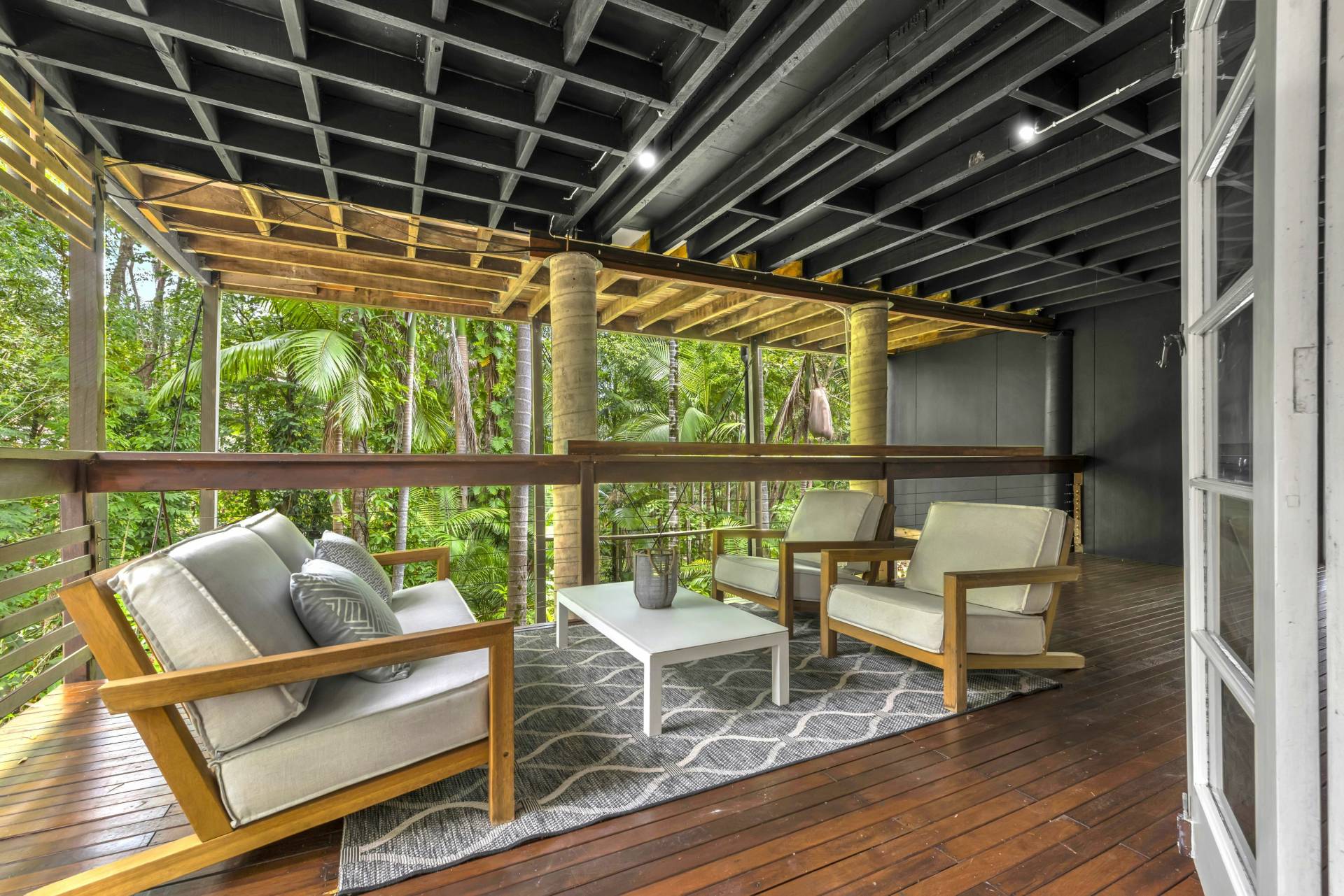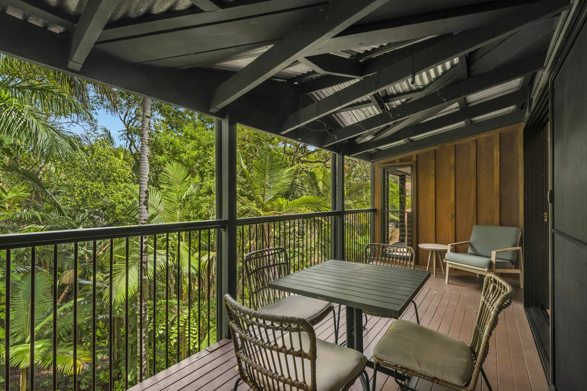 • Large and air-conditioned living/dining room with adjoining covered entertaining balcony offering a picturesque rainforest outlook