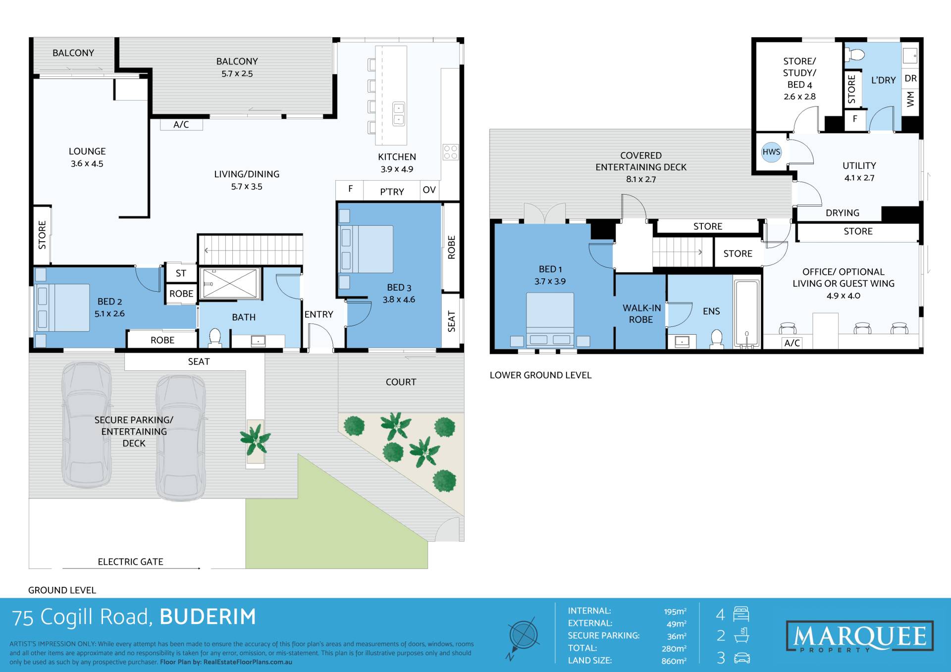 • Electric Gate access with secure parking for 2 cars plus additional off-street parking