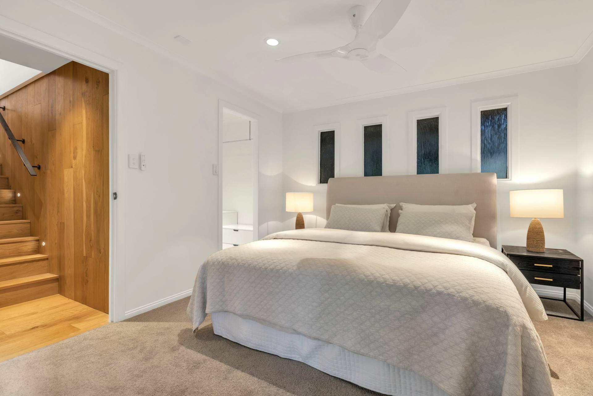 • Engineered timber flooring to all living areas and stunning internal timber staircase with step lighting