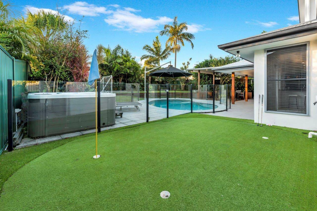 A grand entrance with feature timber staircase sets the tone for this magnificent residence which encompasses five spacious bedrooms, three bathrooms (2 ensuited) plus an extra powder room, spacious and central kitchen, huge open-plan living and dining area, separate media/rumpus room, double garage with additional off-street parking, and a spectacular north facing covered entertaining area that overlooks the stunning inground pool, hot tub and golf putting green!