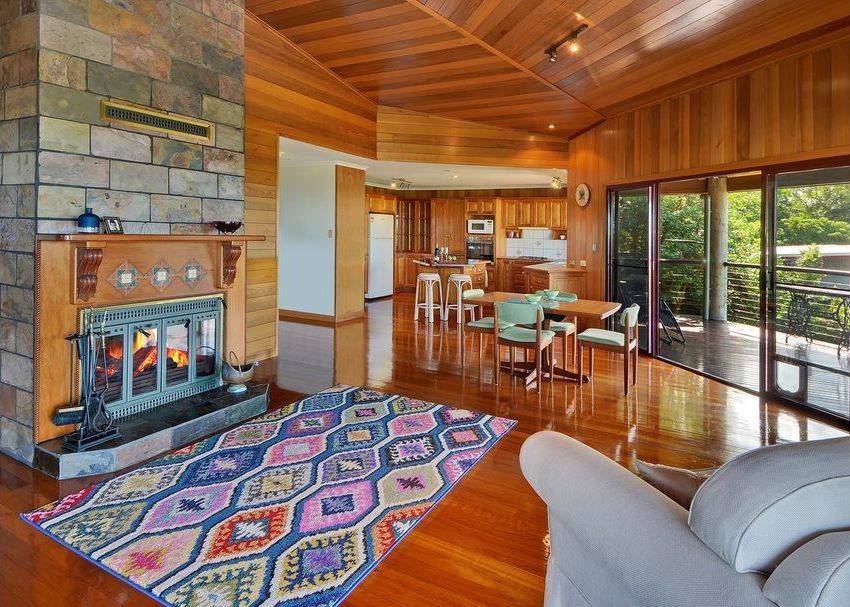 •    Main living area with polished timber floors, vaulted ceilings and a fireplace
