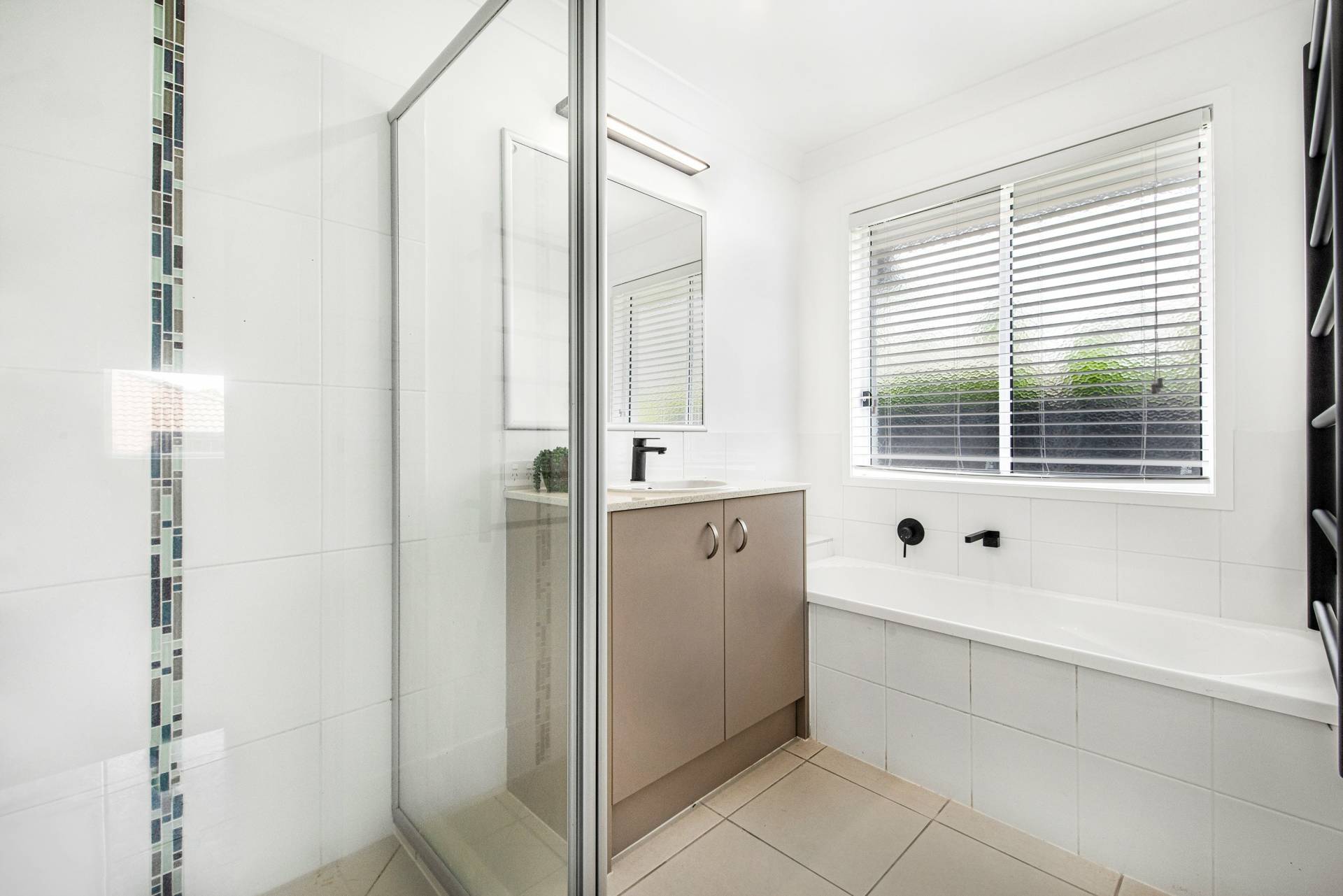 • Modern main bathroom includes bathtub