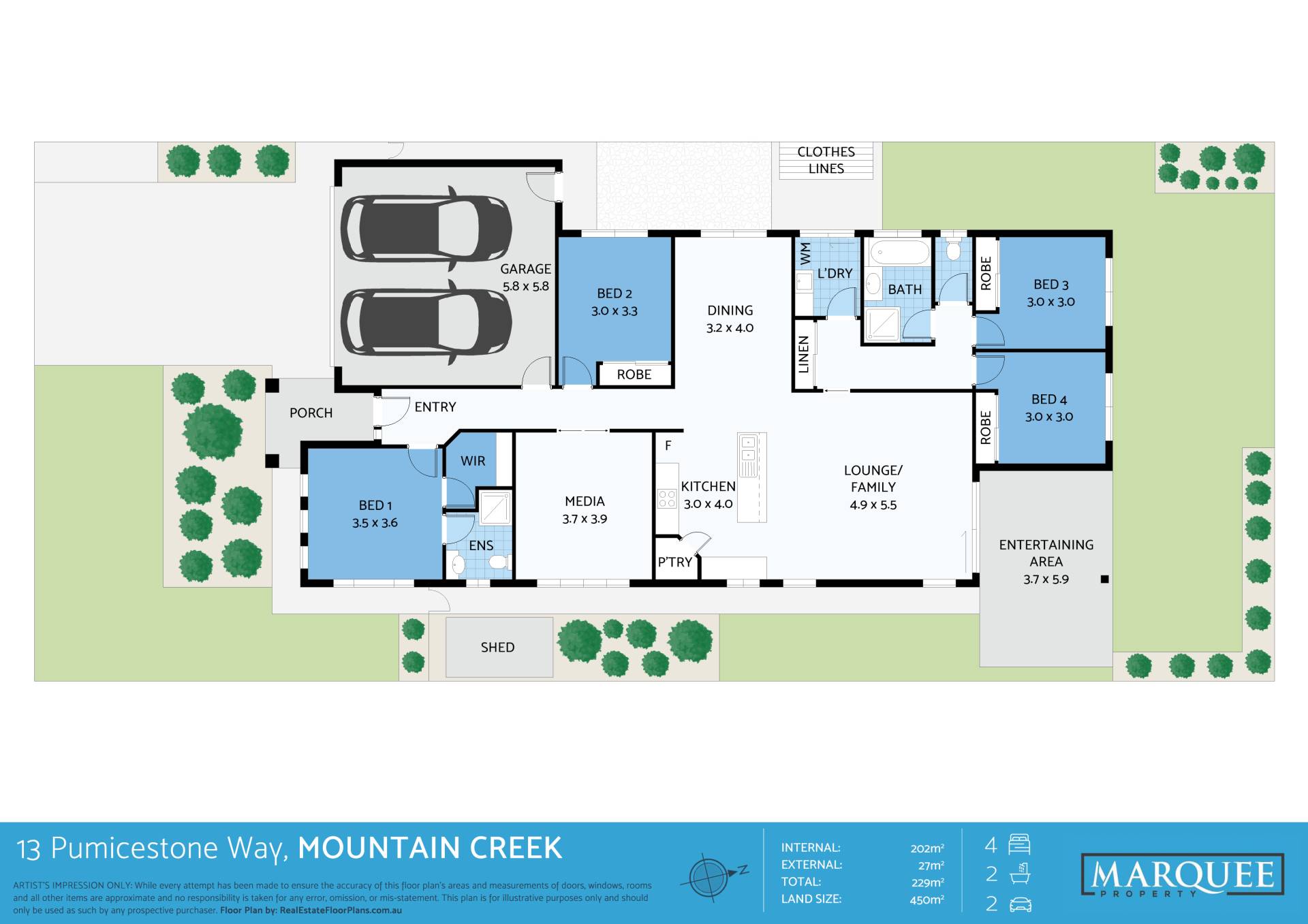 Superbly designed with over 200m² of living under roof, this quality-built home includes four spacious bedrooms, two bathrooms, a stylish and central kitchen with multiple adjoining living spaces including separate media room, double garage with storage, and a large north-facing outdoor entertaining area.