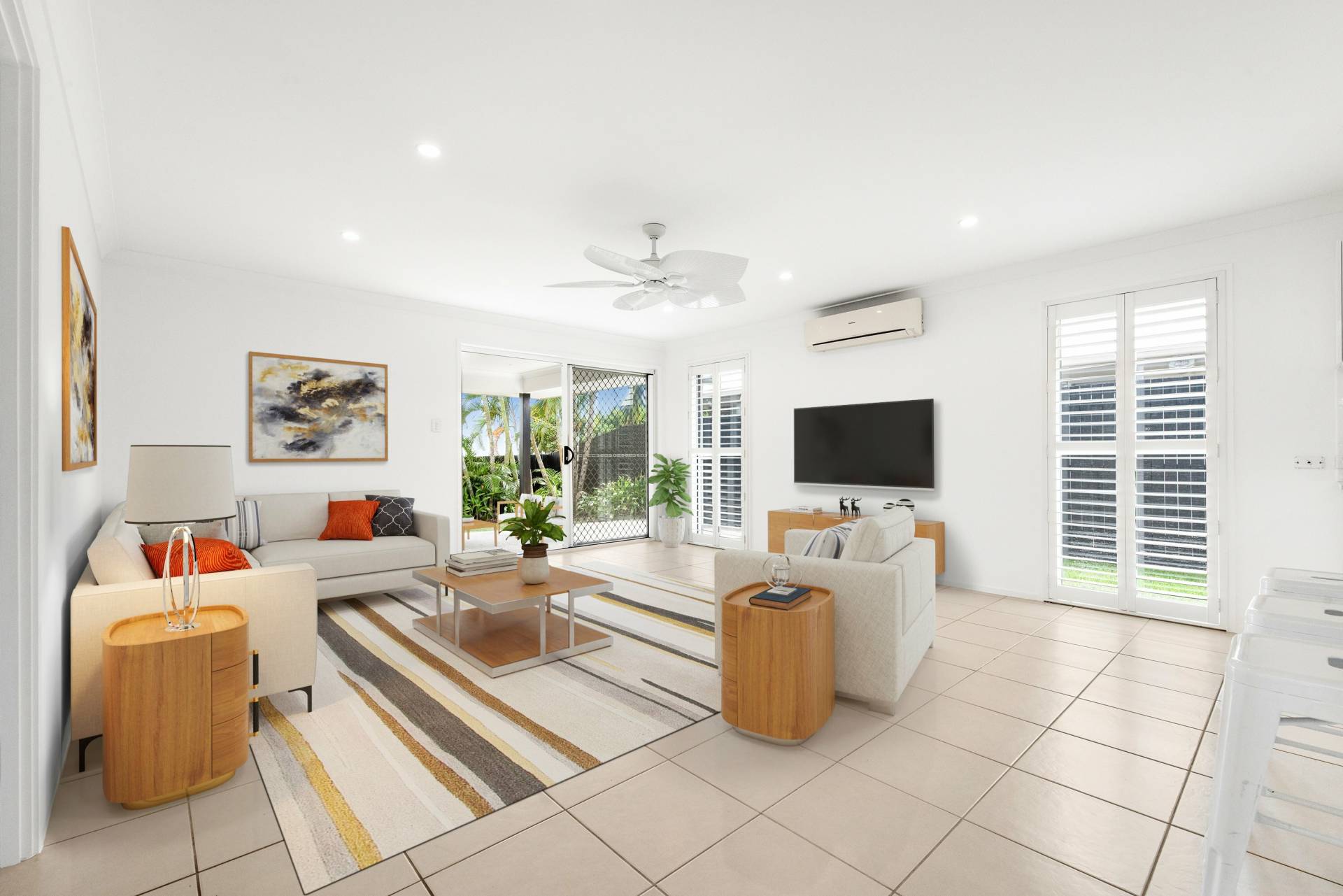 • Huge L-shaped, open-plan kitchen, dining and main living area with air-conditioning