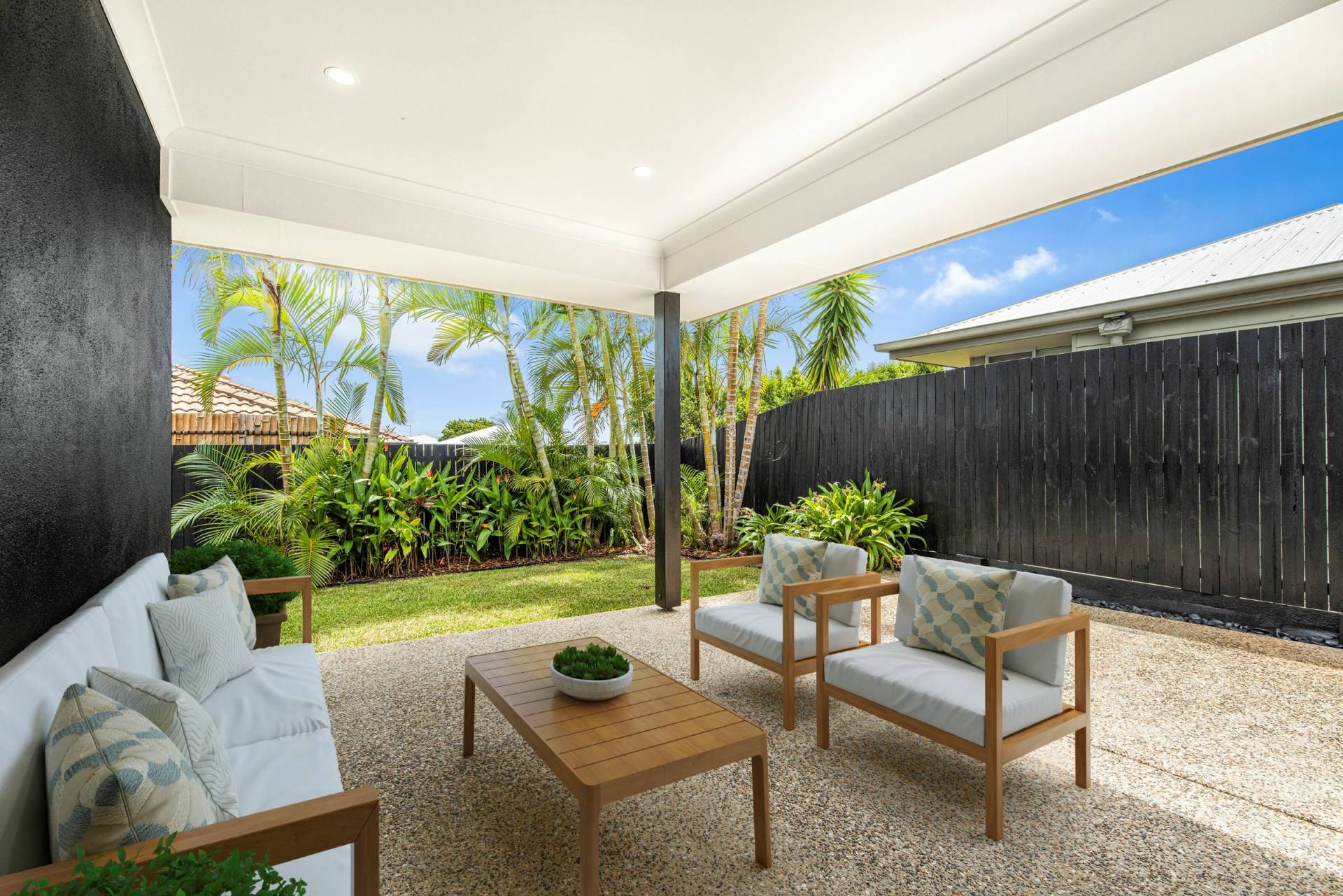 • North facing covered outdoor entertaining area with extended slab