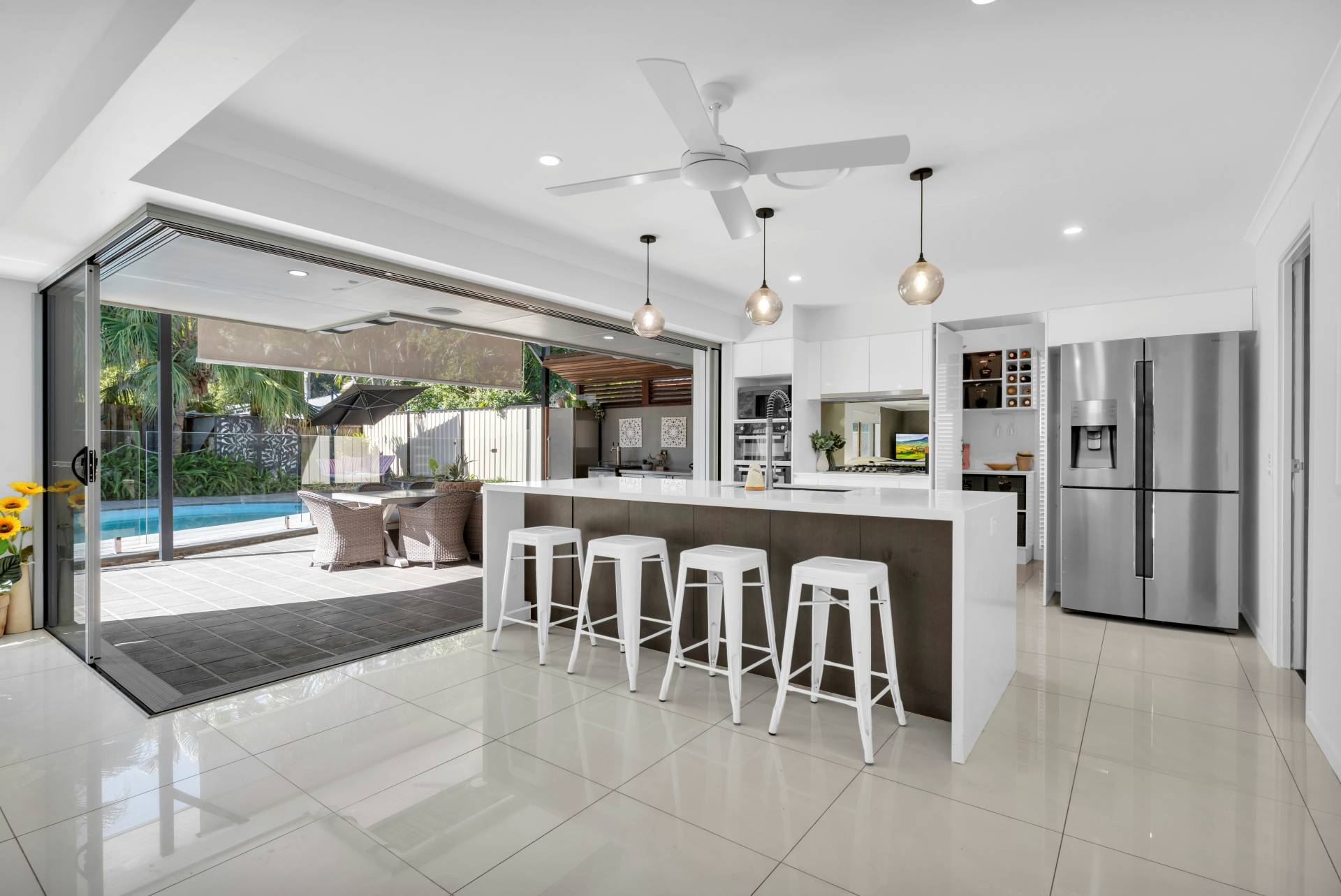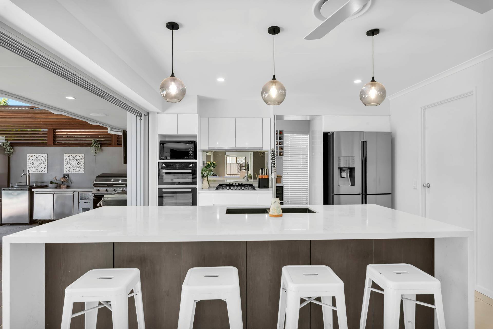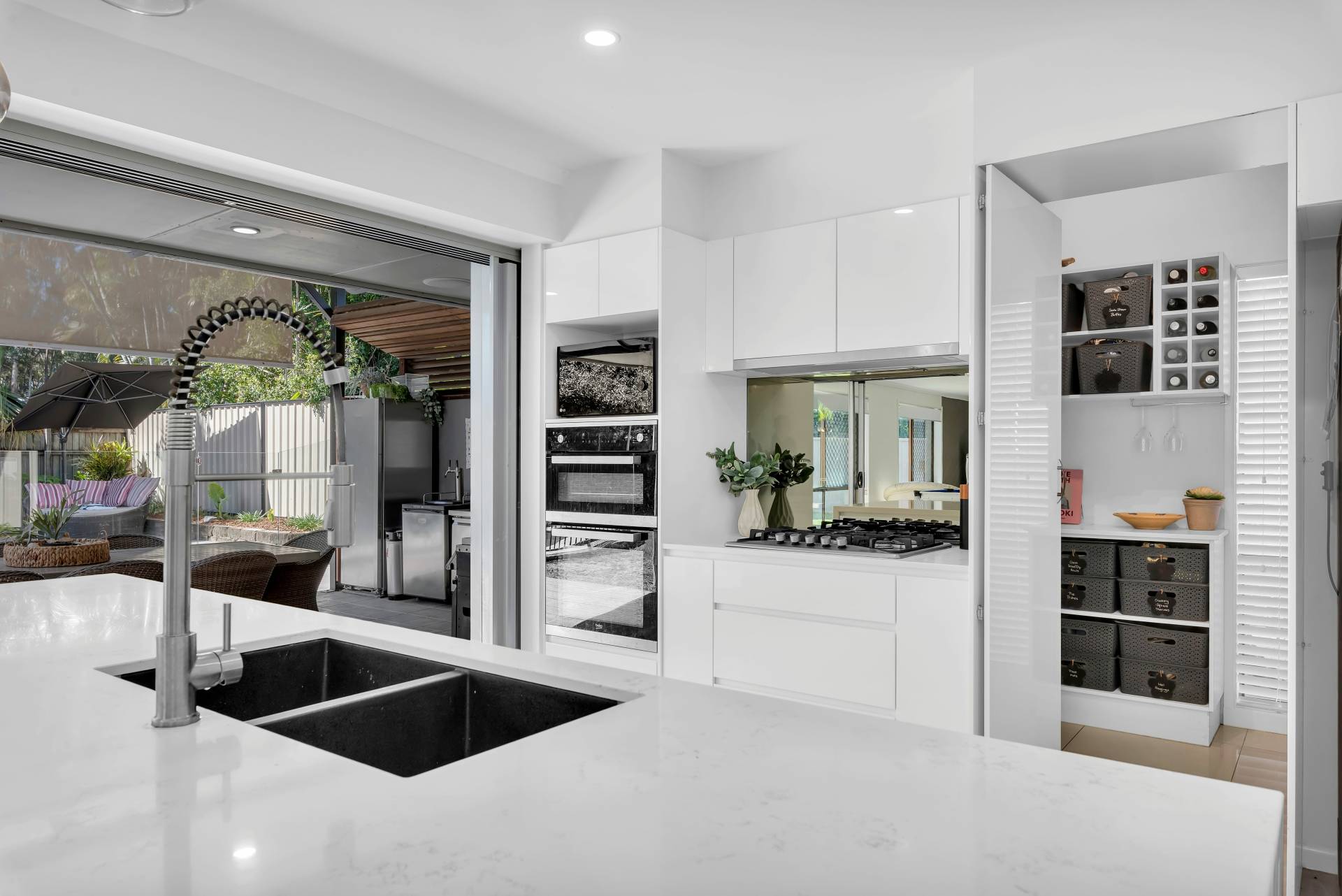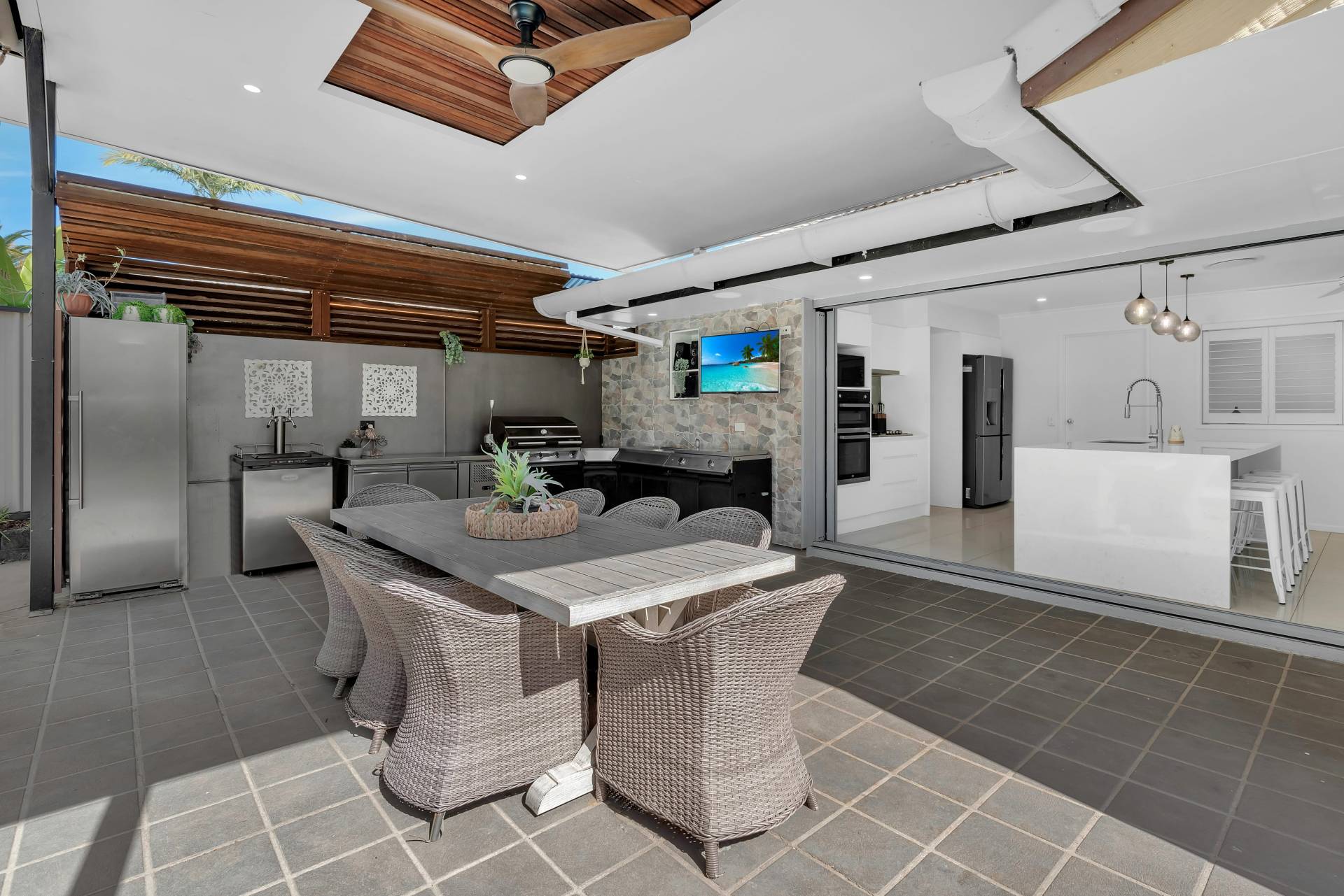 • Spectacular north-east facing covered alfresco entertaining area with flyover roof and amazing stainless steel outdoor kitchen