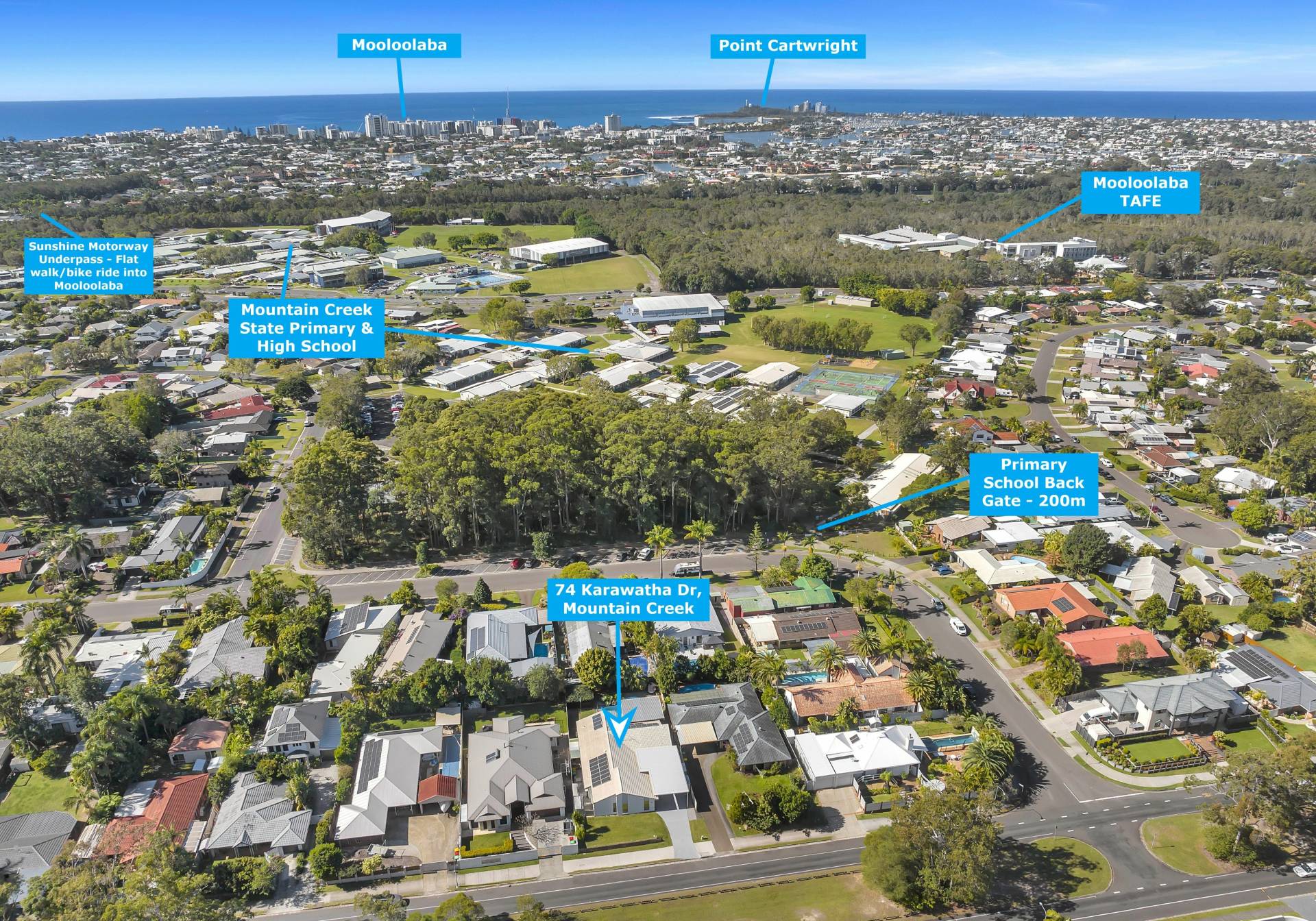 Situated in a premium Mountain Creek location within walking distance of schools, shops, parks, public transport, Headland Golf Club, the Creek Tavern and all the walking and cycling tracks that surround the area. Mooloolaba Beach and Esplanade are only a flat bike ride or 6-minute drive away, and with easy motorway access it’s only 10-12 minutes to Sunshine Coast University, Sunshine Coast University Hospital, Sunshine Plaza and Sunshine Coast Airport.