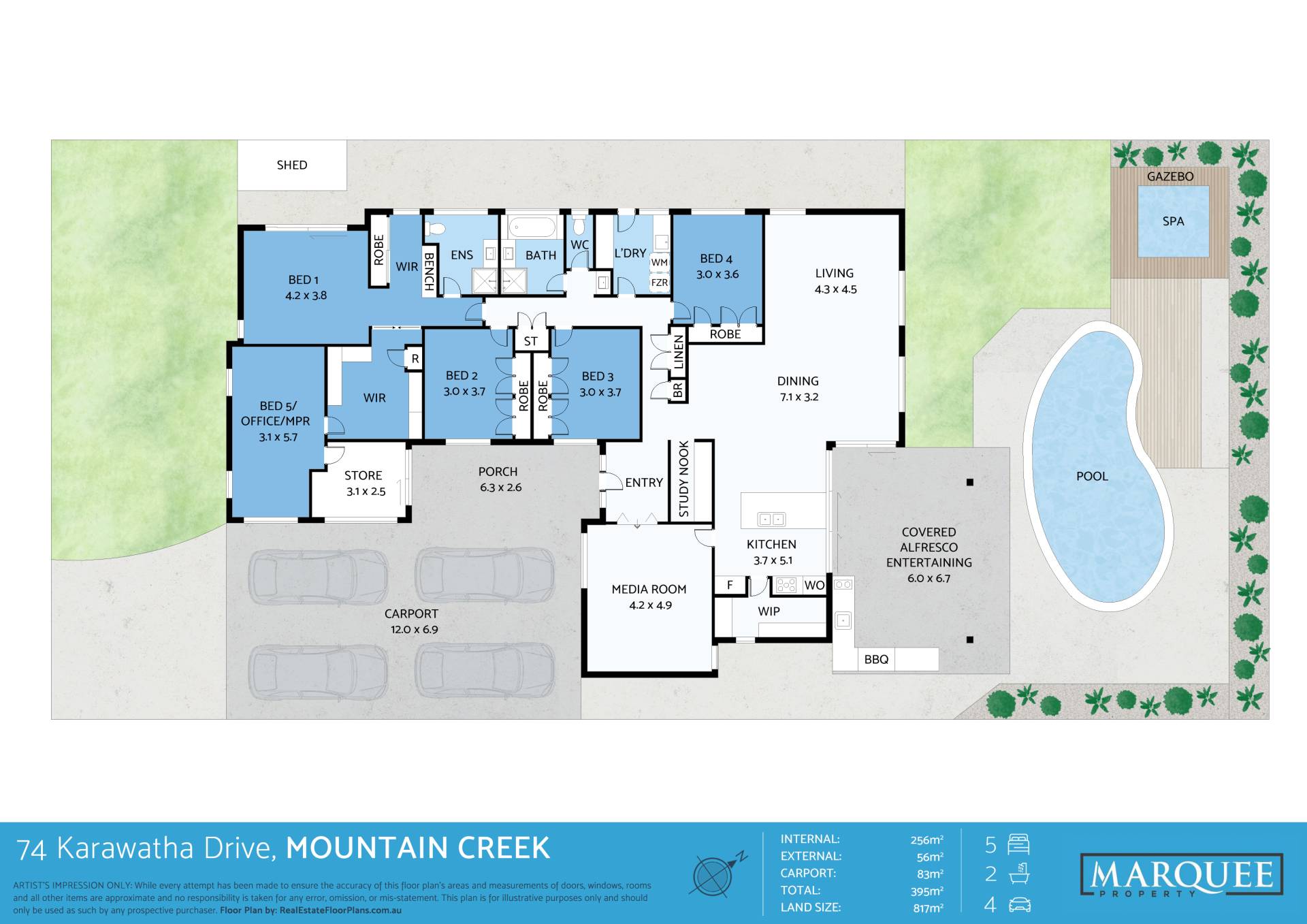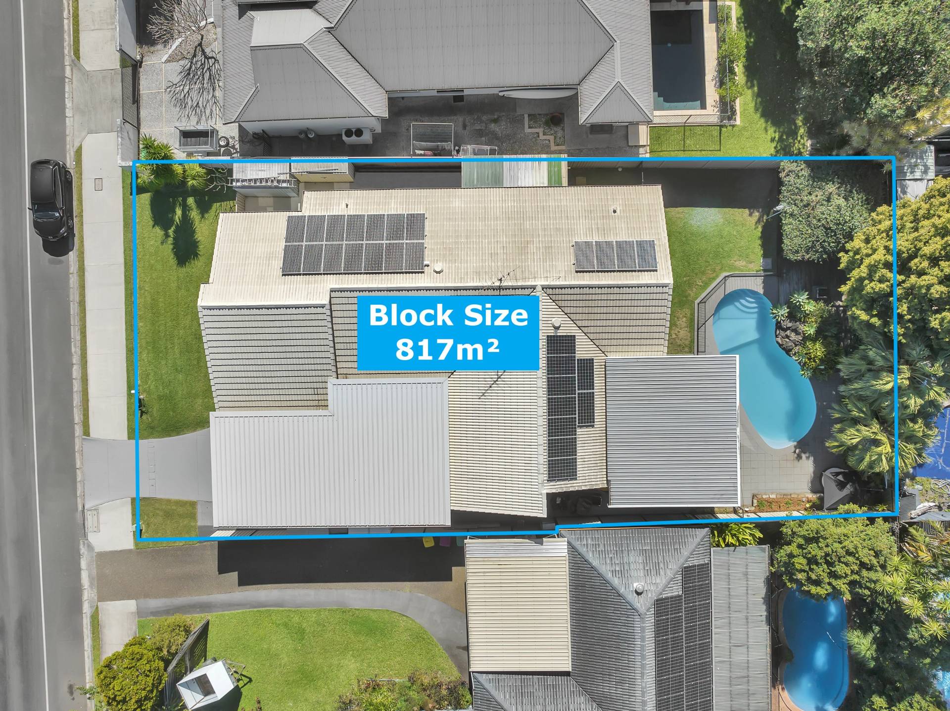 • All located on a large and virtually level 817m² block