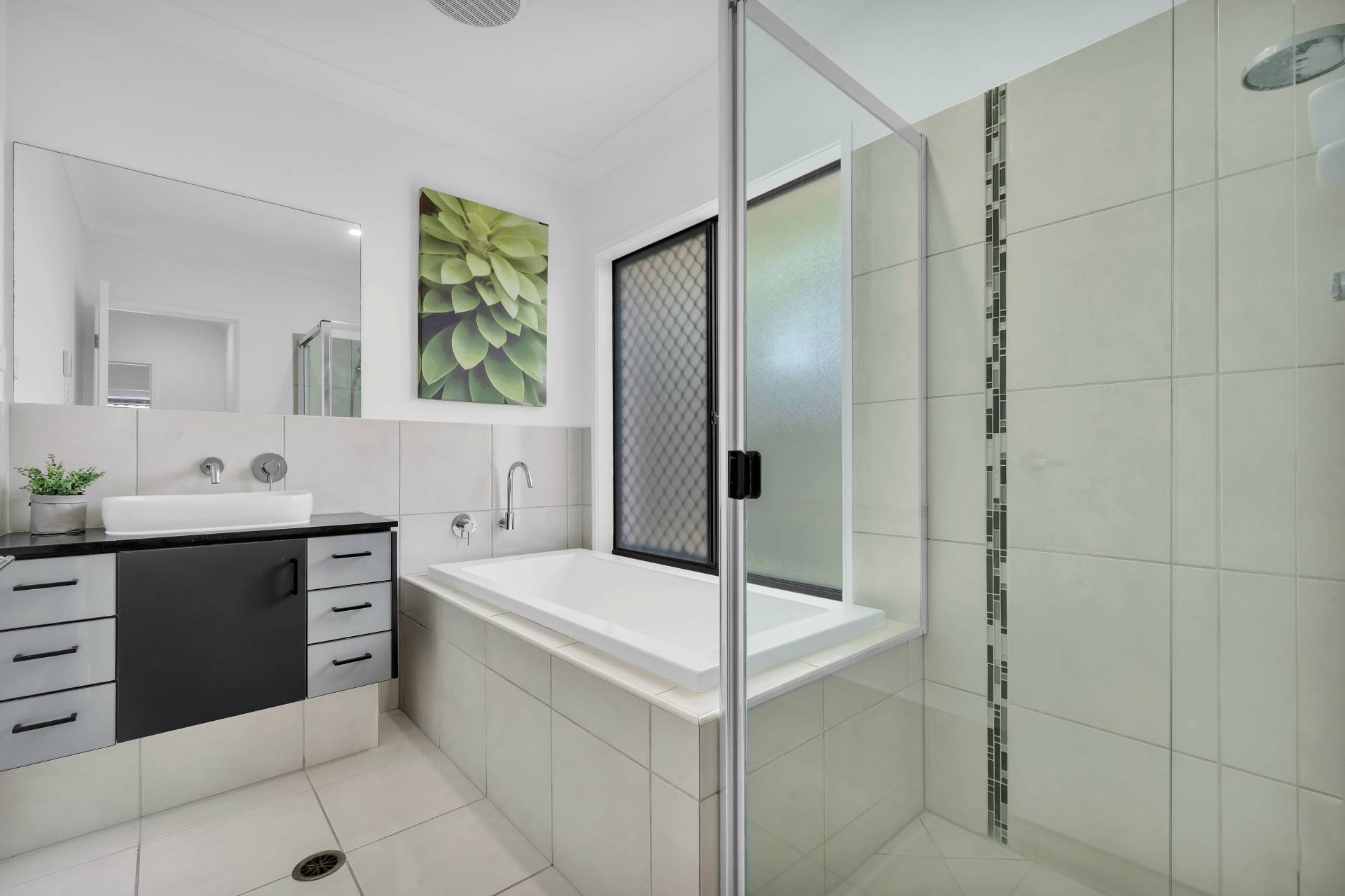 • Modern main bathroom includes bathtub