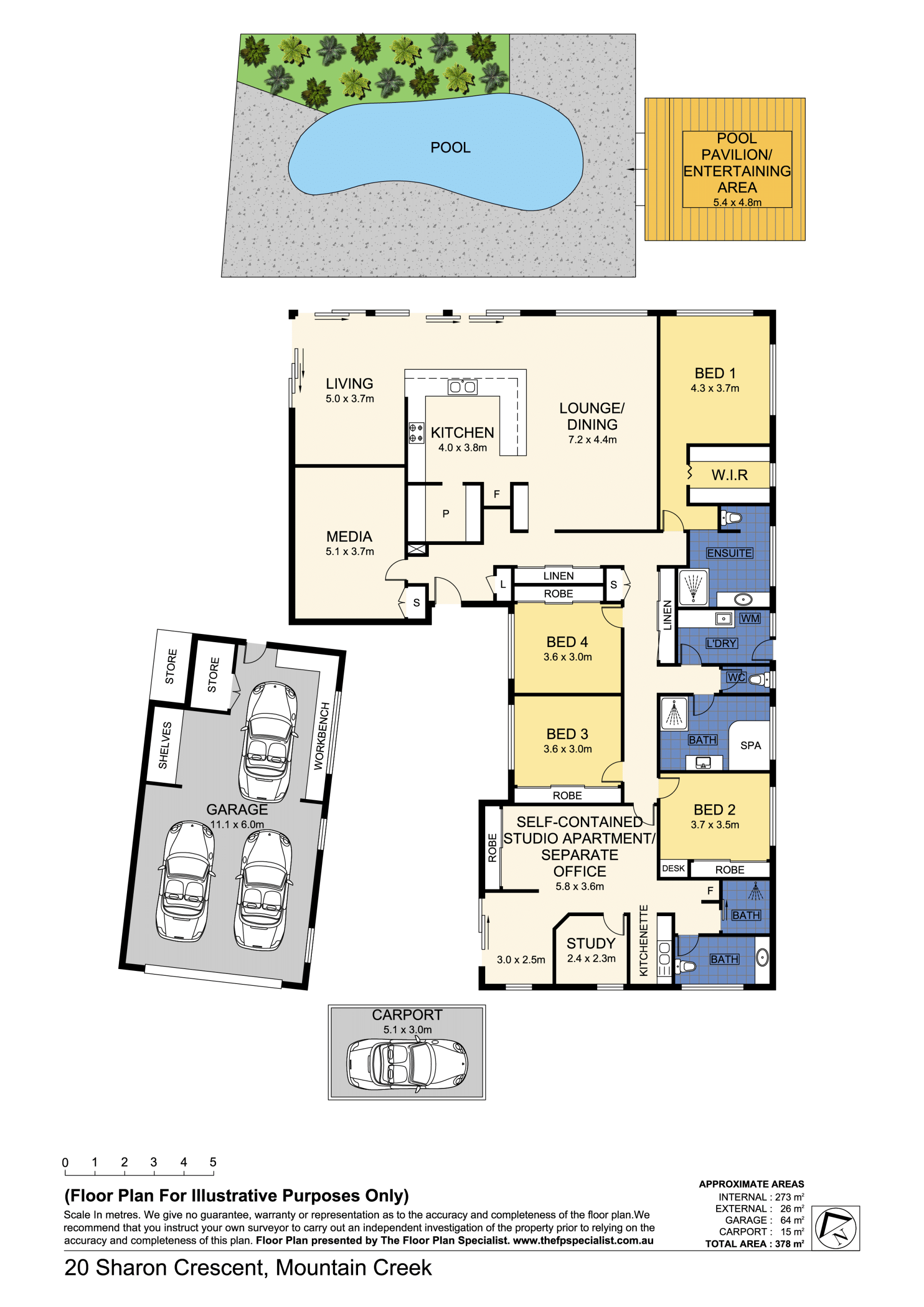 Offering 4 bedrooms plus an additional studio apartment or office, 3 bathrooms, 3 large and separate internal living areas, a superb inground pool and pool pavilion, and an enormous garage plus extra carport; there is without doubt room for all the family and then some.