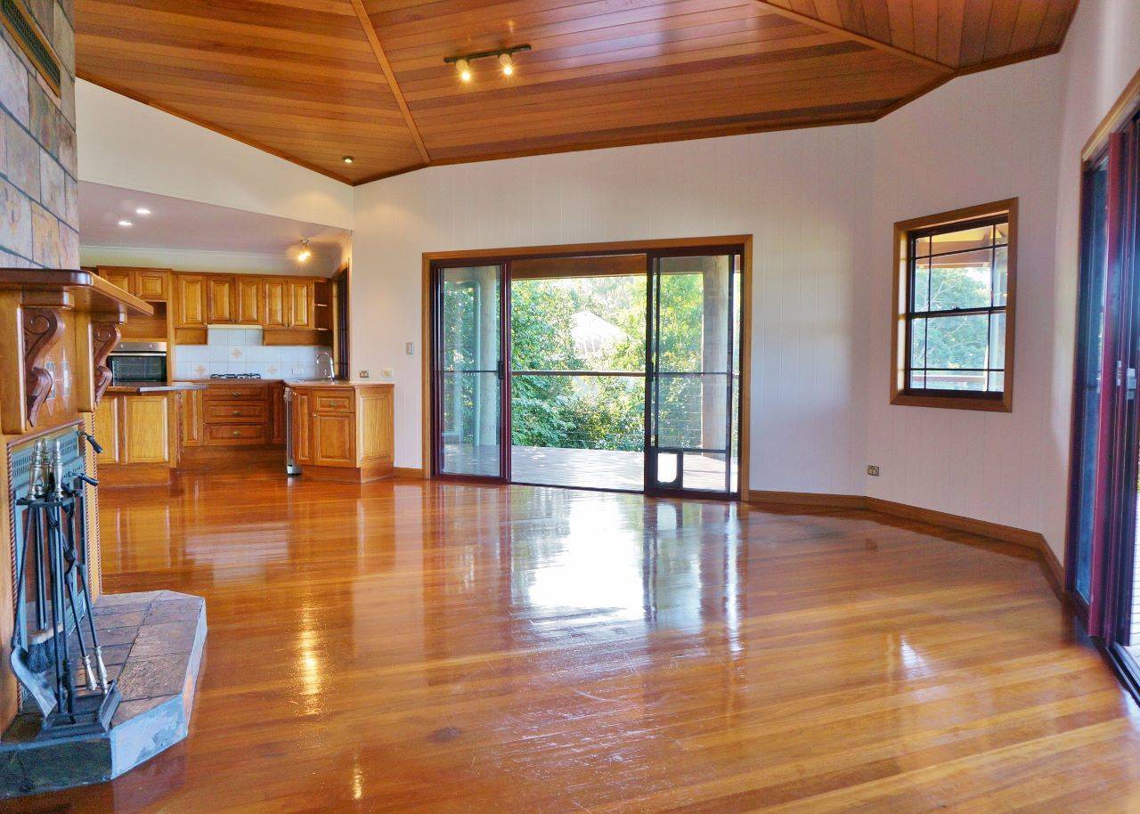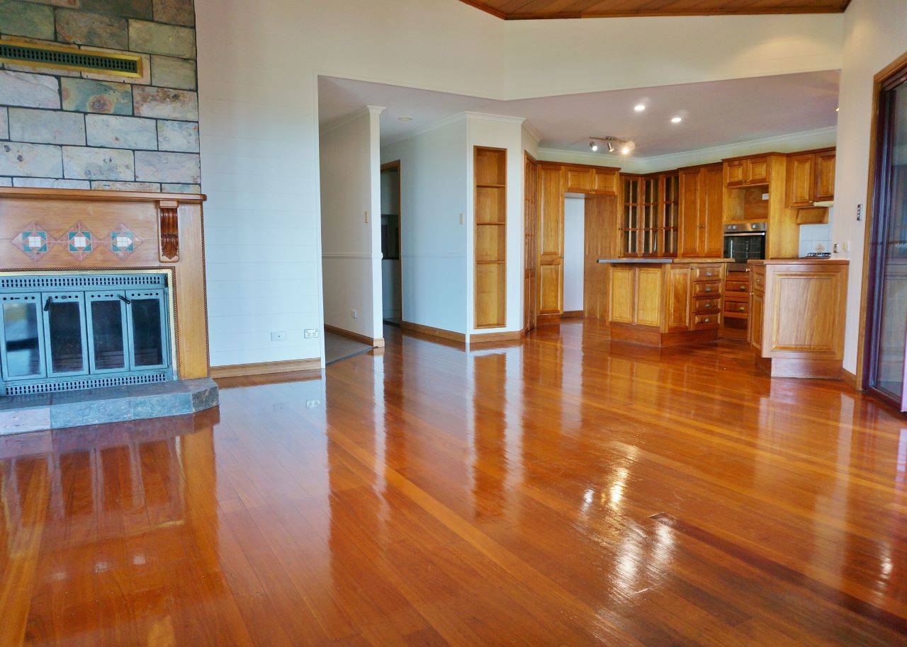 •    Main living area with polished timber floors, vaulted ceilings and a fireplace