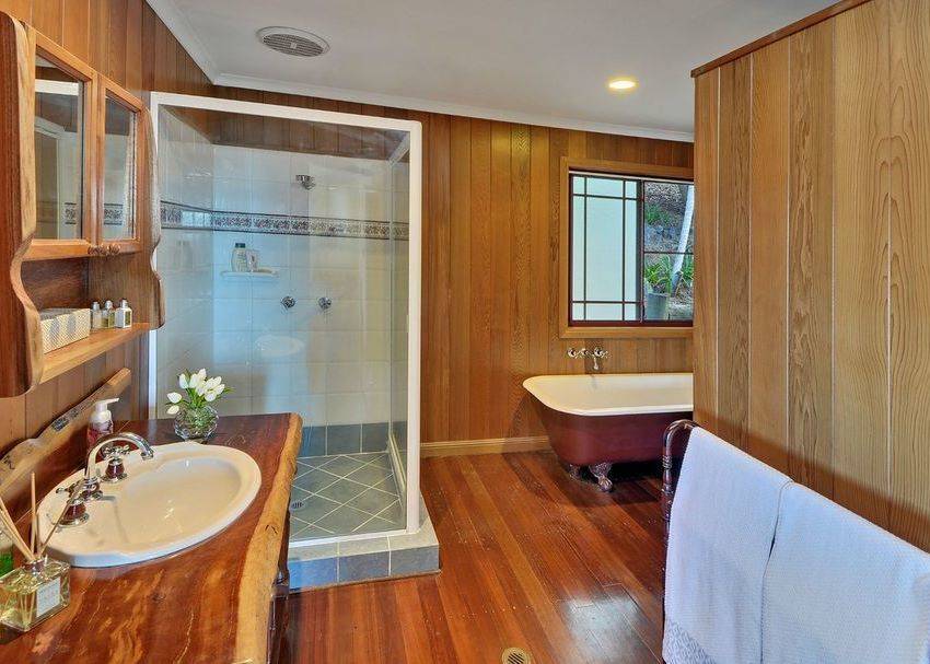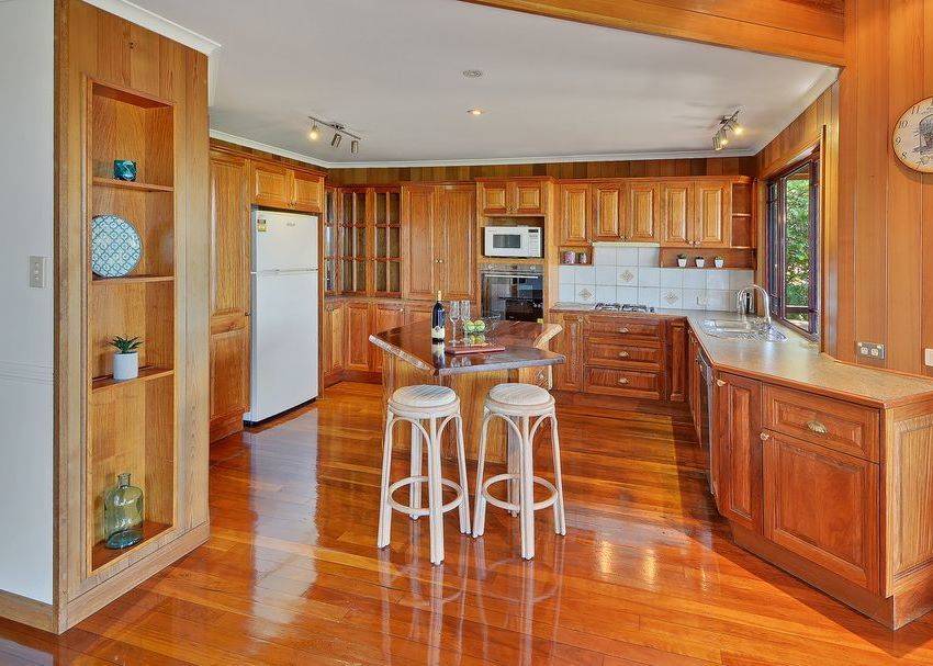•    Tasmanian Oak Kitchen offers cupboards galore, includes gas cooktop and dishwasher