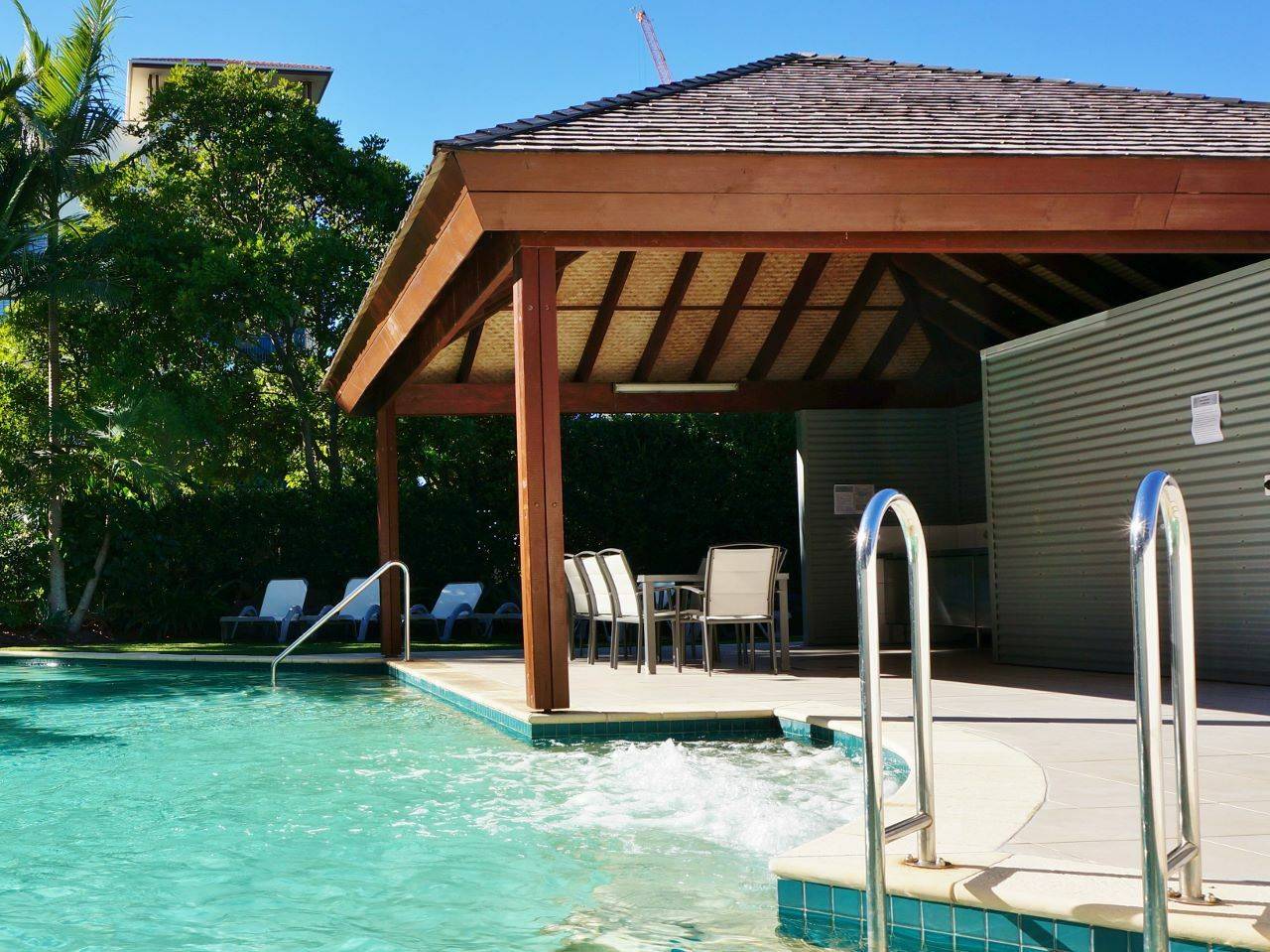 • Resort features include a stunning pool with waterfall and spa bench, entertaining pavilion, fitness room, BBQ area, and a communal vegetable and herb garden