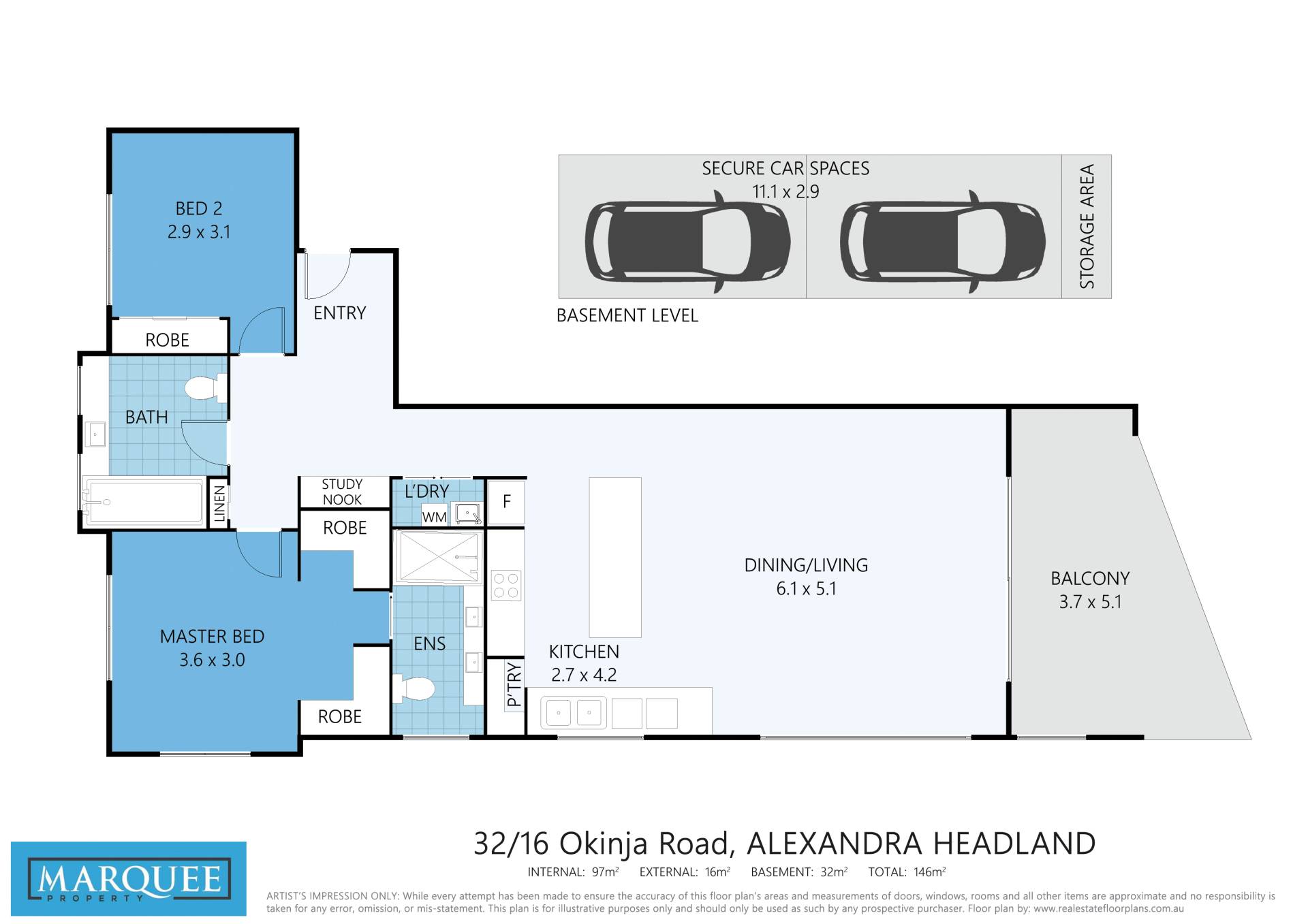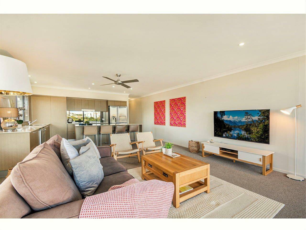 Offering a spacious and well-designed layout that includes 2 good-sized bedrooms, 2 modern bathrooms (main ensuited), a large and air-conditioned open plan kitchen and living area, an entertainer’s balcony with glorious views and floor to ceiling bi-fold shutters, and 2 secure car spaces.