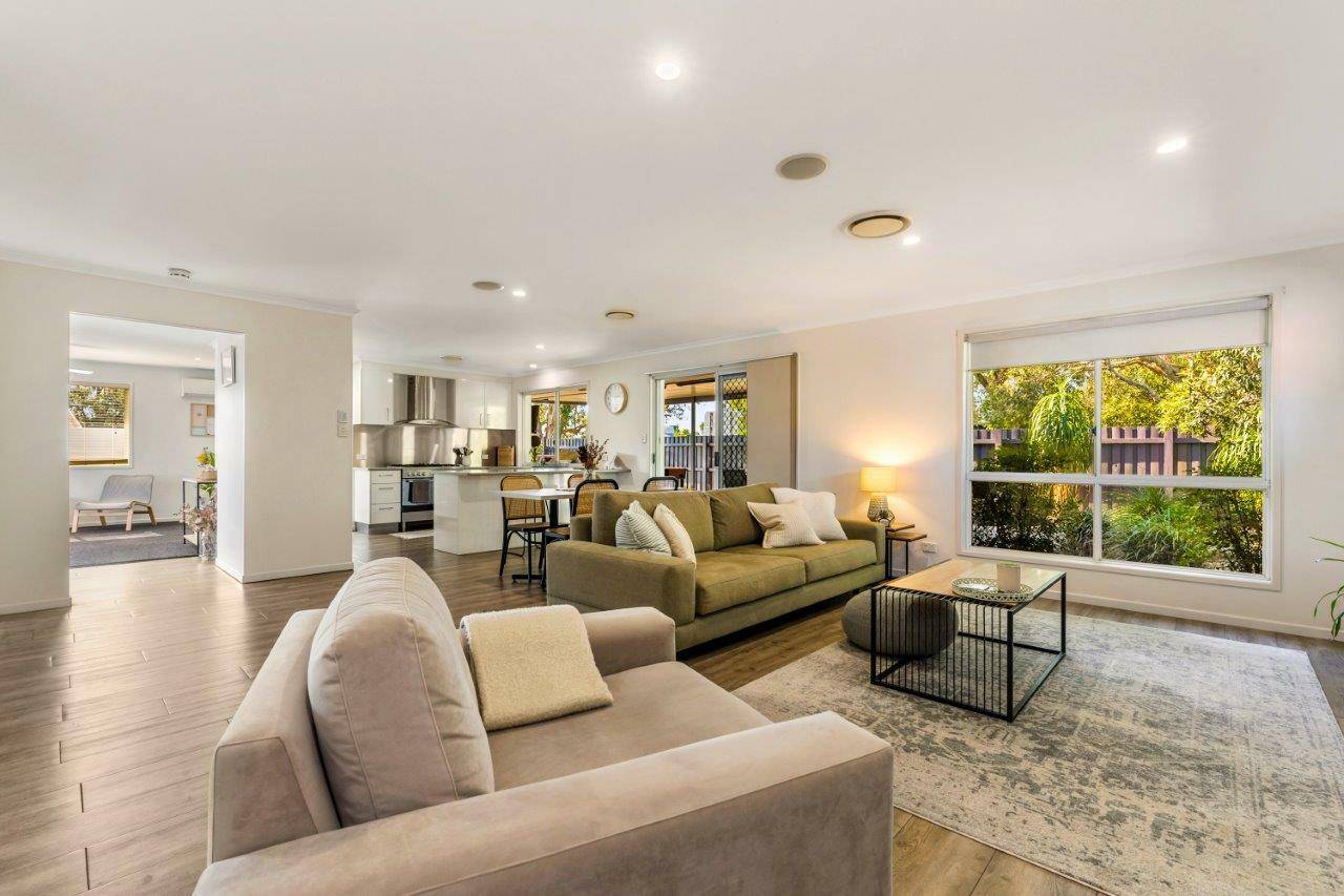 Stylishly renovated and offering a fantastic layout that allows good separation for easy family living this superb 3 bedroom home includes; a huge main bedroom with retreat and stunning ensuite, 2 large and separate living areas with extra study/office space, an enormous covered entertaining area and deck, plenty of off-street parking with large tradesman’s shed, and a good-sized grassed area for the kids and pets or a perfect spot for a pool.